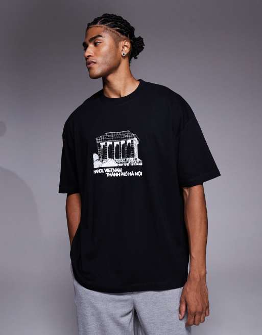 ASOS DESIGN – Svart t-shirt i oversize med landskapstryck