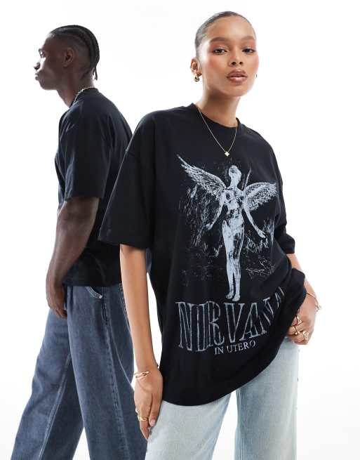 ASOS DESIGN – Svart t-shirt i oversize med licensierat Nirvana-tryck