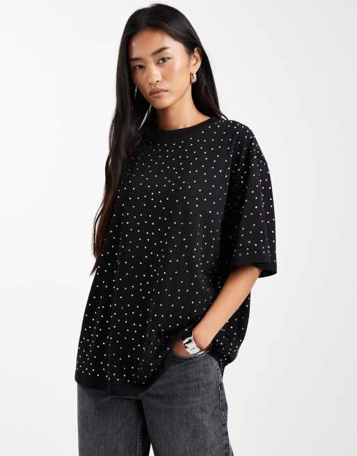 ASOS DESIGN – Svart t-shirt i oversize med silverfärgade nitar