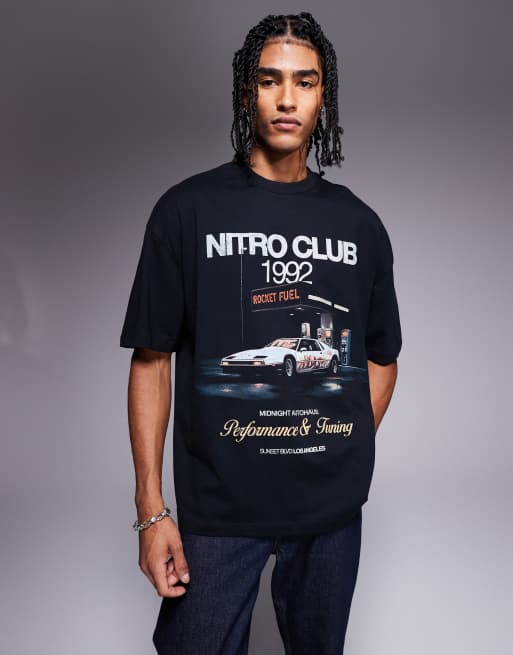 ASOS DESIGN – Svart t-shirt i oversize med tryck framtill