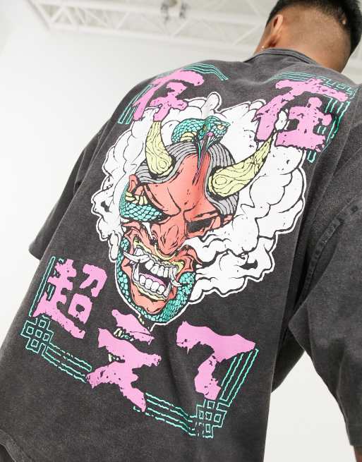 ASOS DESIGN – Svart t-shirt i oversize med tryck på ryggen och tvättad finish