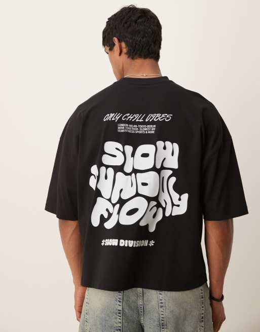 ASOS DESIGN – Svart t-shirt i oversize och boxig passform med tryck baktill