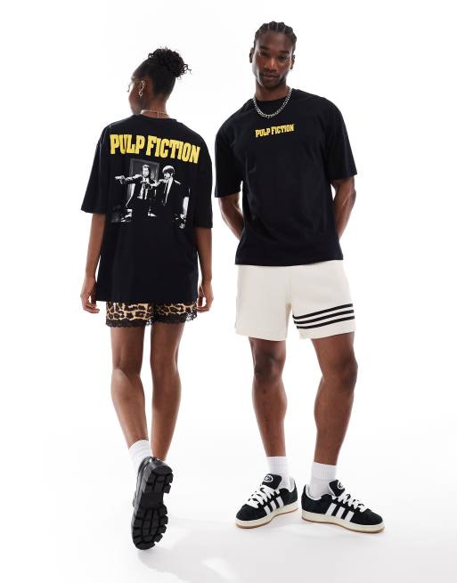 ASOS DESIGN – Svart t-shirt i oversize och unisex-modell med licenserat Pulp Fiction-tryck