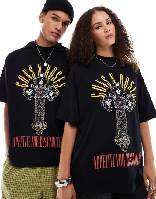 ASOS DESIGN – Svart t-shirt i oversize och unisex-modell med raglanärmar och Guns N' Roses-tryck