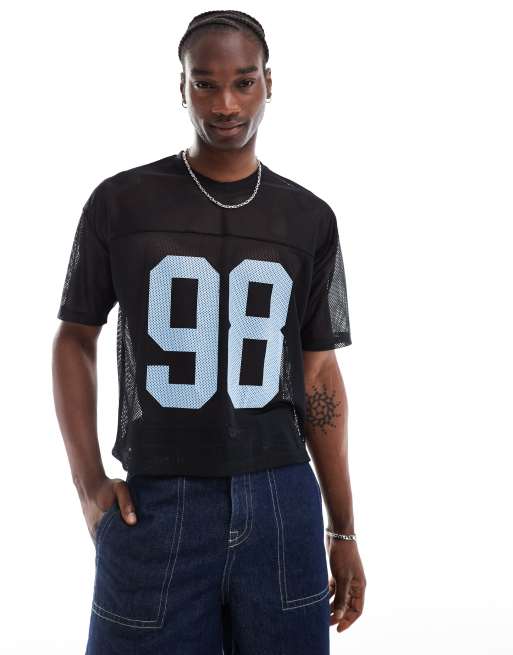 ASOS DESIGN – Svart t-shirt i sportig mesh, oversize och boxig passform med tryck framtill