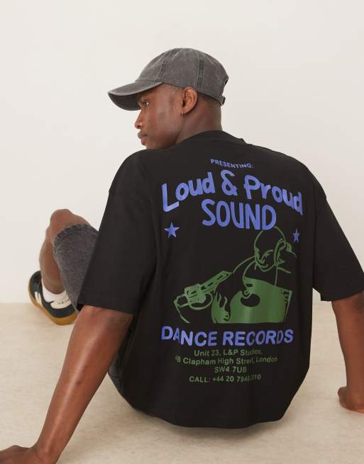 ASOS DESIGN – Svart t-shirt med boxig oversize passform och tecknat tryck