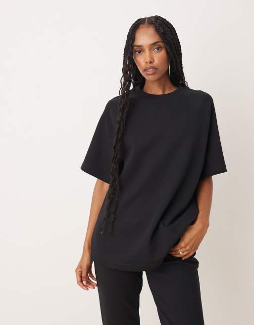 ASOS DESIGN – Svart t-shirt med raglan-ärmar och interlocksömmar, del av set