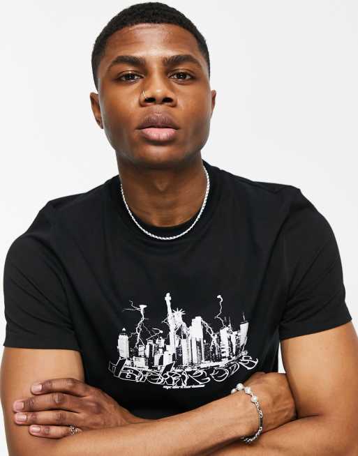 ASOS DESIGN – Svart t-shirt med stadstryck - BLACK - BLACK