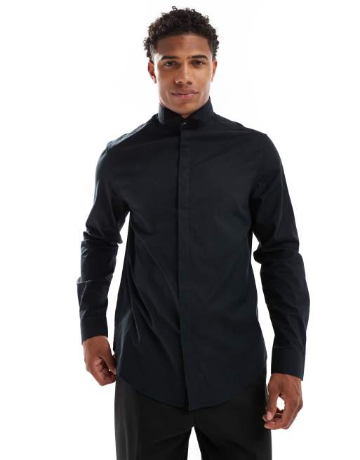 ASOS DESIGN – Svart, texturerad finskjorta i regular fit