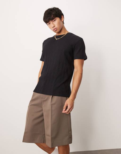 ASOS DESIGN – Svart, texturerad t-shirt med rund halsringning