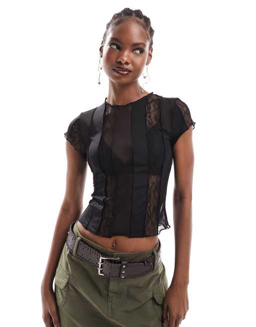 ASOS DESIGN – Svart topp med korta ärmar och blandad struktur