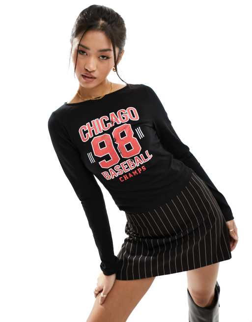 ASOS DESIGN – Svart topp med texttryck i collegestil