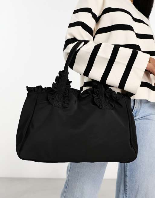 ASOS DESIGN – Svart toteväska i nylon med volang