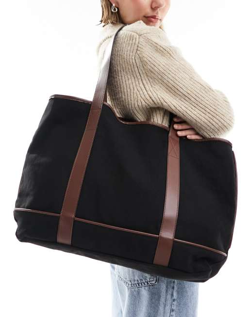ASOS DESIGN – Svart toteväska med passpoaler i canvas