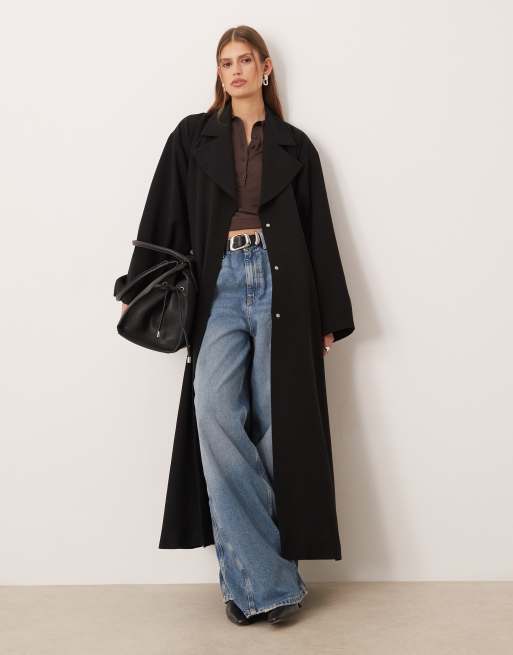 ASOS DESIGN – Svart trenchcoat i oversize med volym