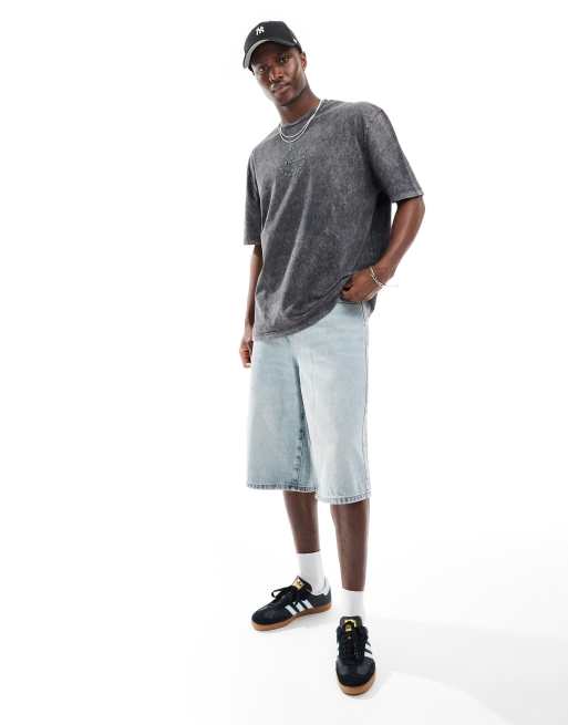ASOS DESIGN – Svart, tvättad, kraftig t-shirt i oversize med broderi framtill och 220gsm