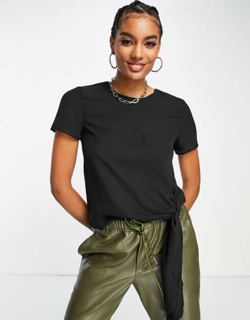 ASOS DESIGN – Svart vävd T-shirt med knut