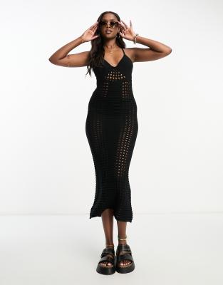 ASOS DESIGN – Svart virkad maxiklänning