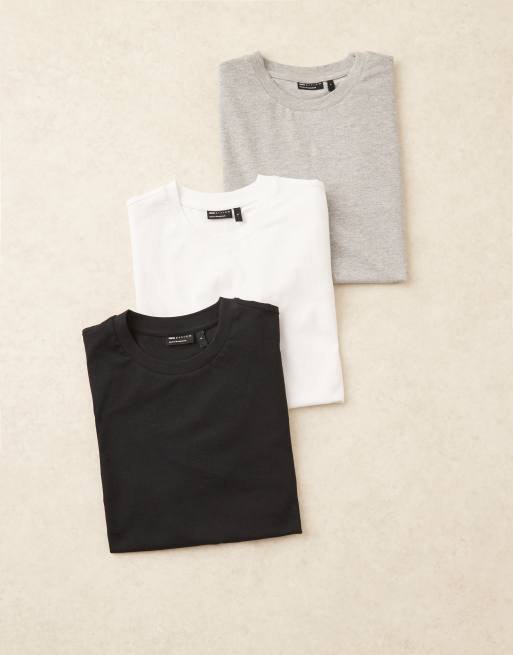 ASOS DESIGN – Svart, vit och gråmelerad, regular t-shirt med rund halsringning, 3-pack