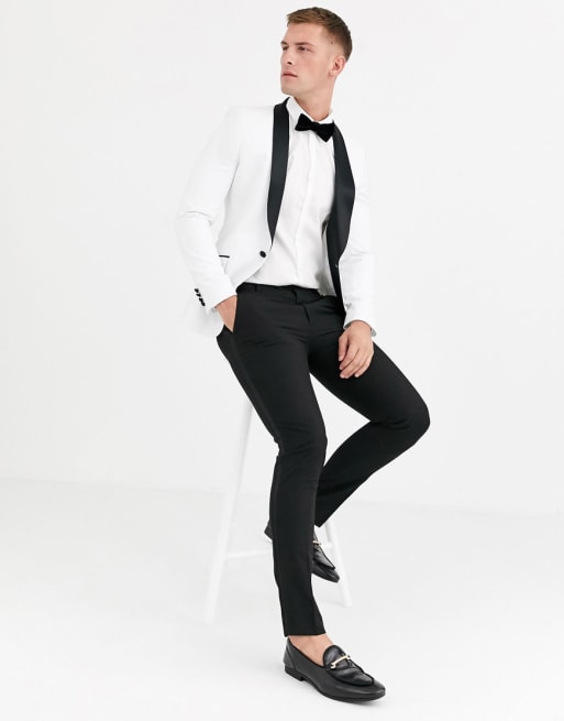 ASOS DESIGN – Svart/vit smoking i superskinny fit