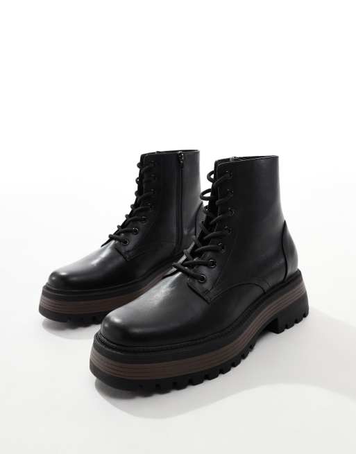 ASOS DESIGN – Svarta arbetskängor med snörning och grov sula