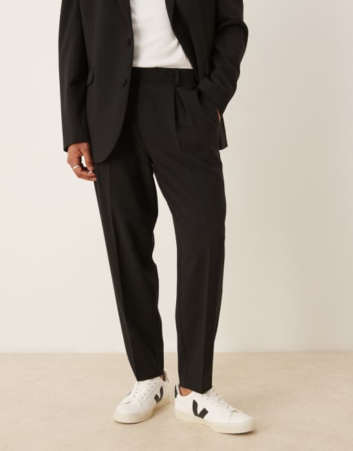 ASOS DESIGN – Svarta avsmalnande kostymbyxor i oversize