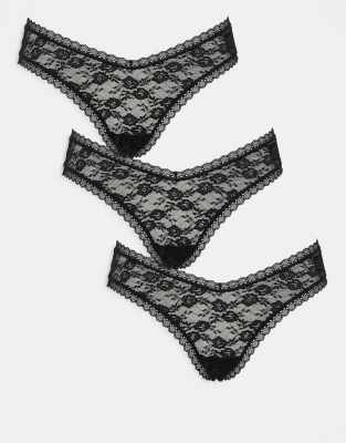 ASOS DESIGN – Svarta brazilian-trosor i spets, 3-pack