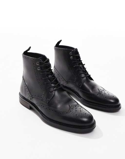 ASOS DESIGN – Svarta brogueboots i läder med snörning