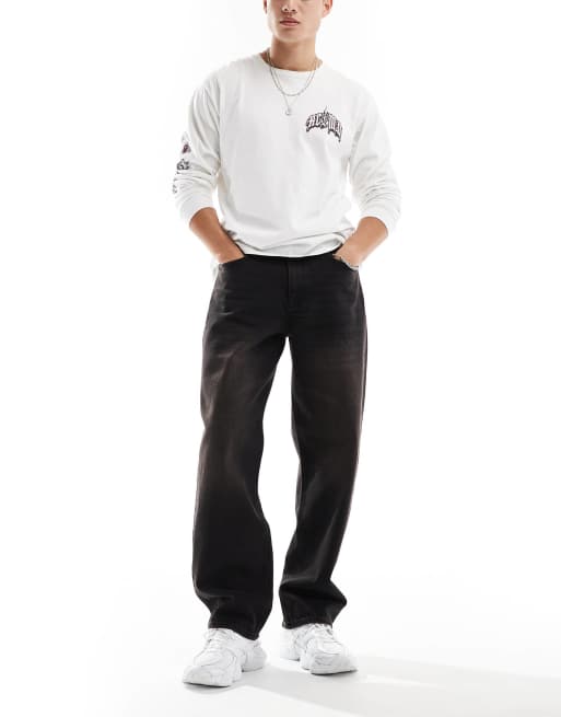 ASOS DESIGN – Svarta, bruntonade, baggy jeans