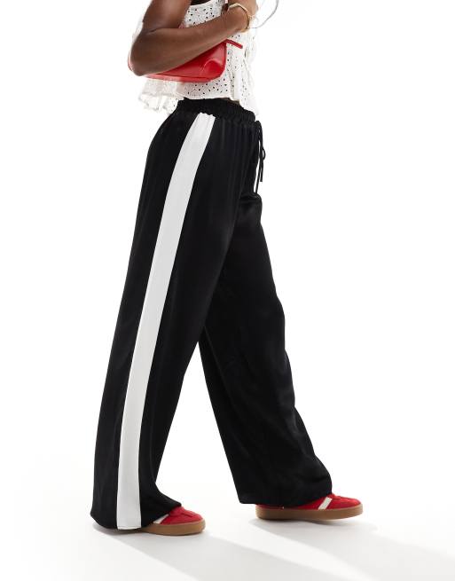 ASOS DESIGN – Svarta byxor med kontrastfärgade detaljer i satin