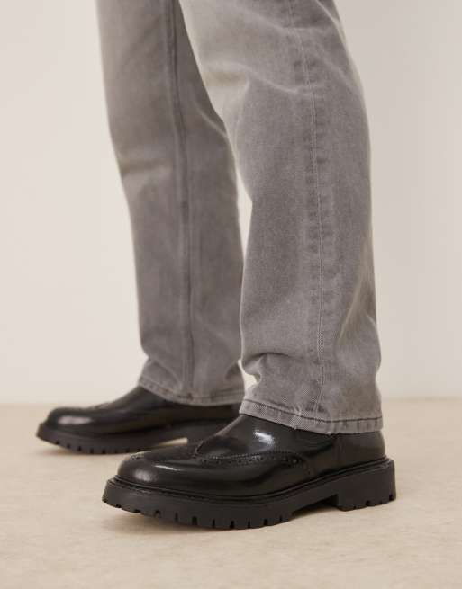 ASOS DESIGN – Svarta chelseaboots i polerat läder med grov sula