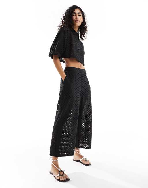 ASOS DESIGN – Svarta culotte-byxor i broderie anglaise, del av set