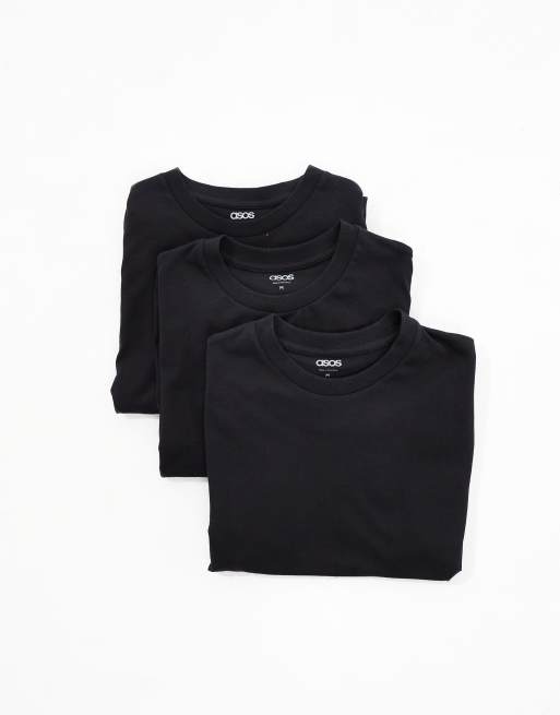 ASOS DESIGN – Svarta, enkla t-shirts i regular fit, 3-pack