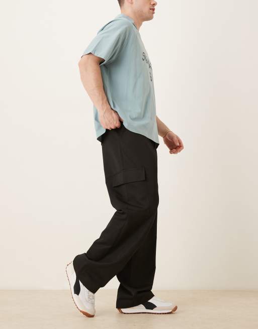 ASOS DESIGN – Svarta finbyxor i cargostil med vida ben och resårmidja
