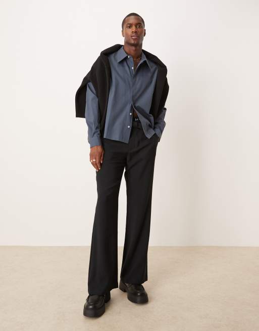 ASOS DESIGN – Svarta finbyxor i vid, utsvängd design med skärp