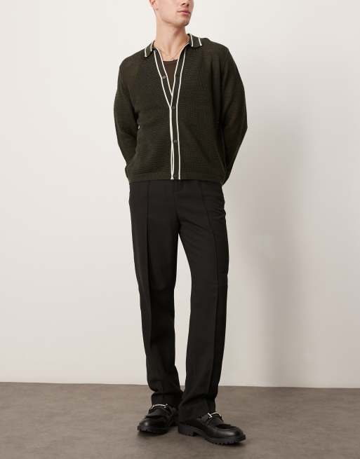 ASOS DESIGN – Svarta finbyxor med hög midja, raka ben och stråveck