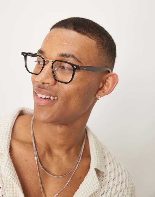 ASOS DESIGN – Svarta, fyrkantiga glasögon i metall med genomskinliga glas