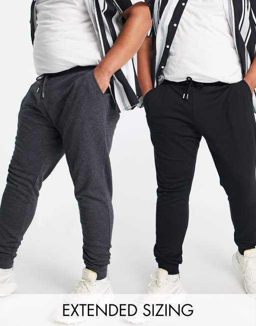 ASOS DESIGN – Svarta/ gråmelerad mjukisbyxor i 2-pack SPARA