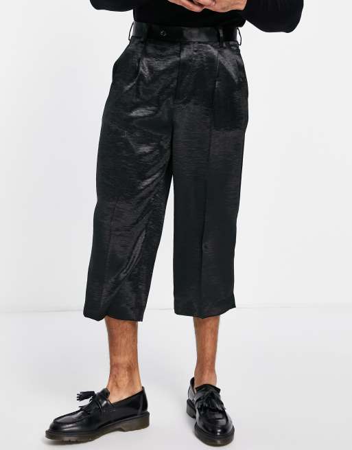 ASOS DESIGN – Svarta högglansiga finbyxor i culottestil med vida ben