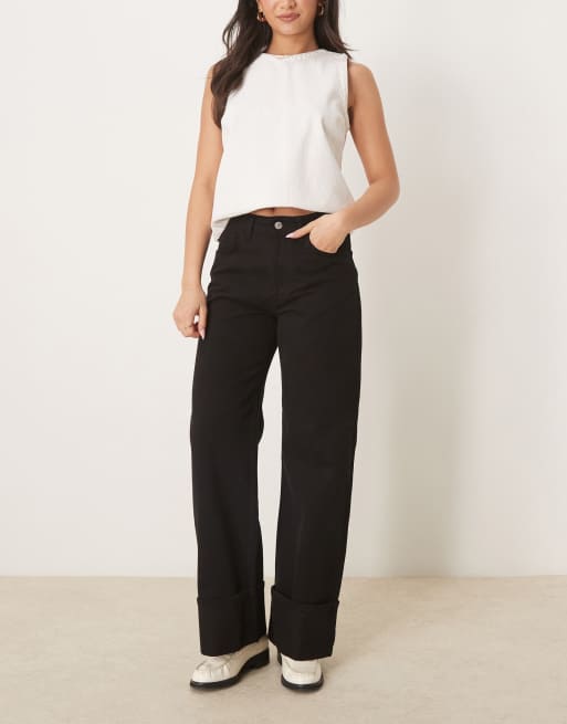 ASOS DESIGN – Svarta jeans med uppvikt fåll