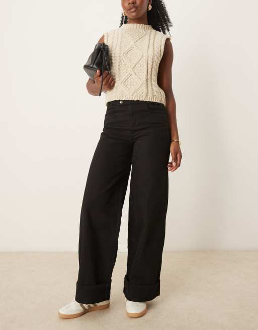 ASOS DESIGN – Svarta jeans med uppvikt kant