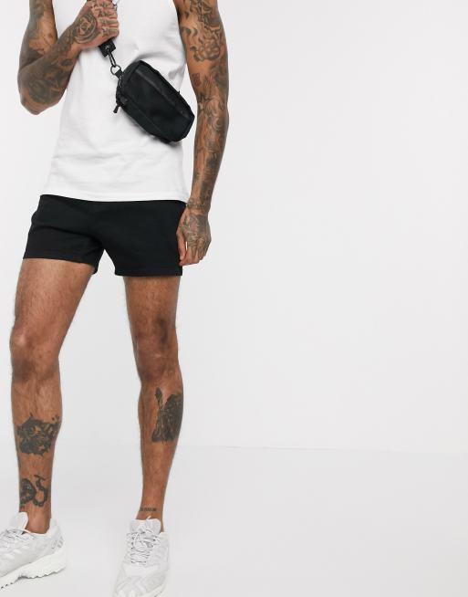 ASOS DESIGN – Svarta jeansshorts i kortare modell med extra smal passform