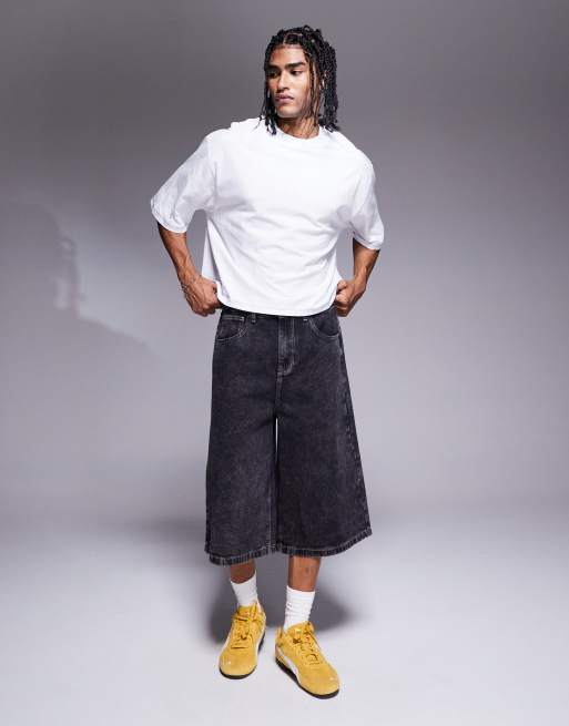ASOS DESIGN – Svarta jeansshorts i längre modell