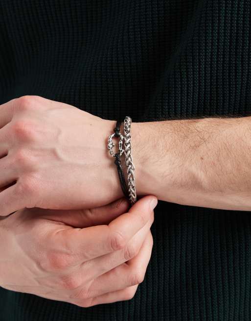 ASOS DESIGN – Svarta kedje- och reparmband, 2-pack