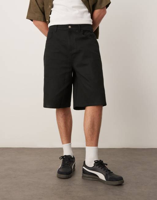 ASOS DESIGN – Svarta, långa shorts i canvas
