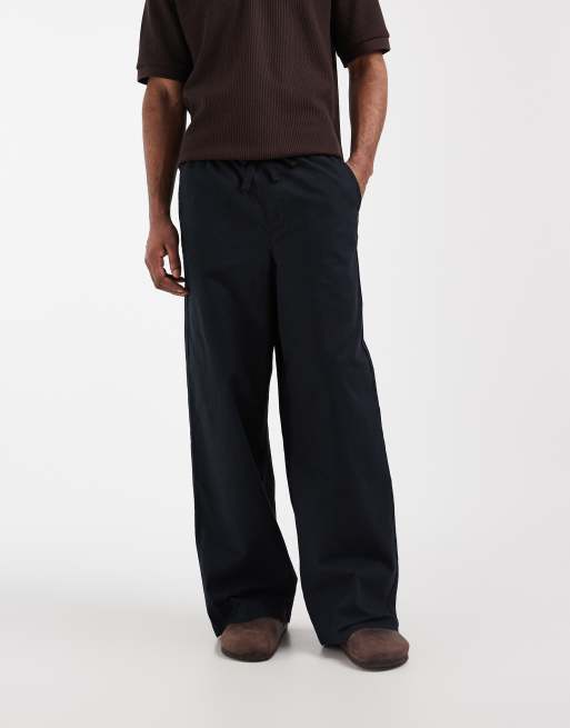 ASOS DESIGN – Svarta, lediga byxor i linnemix