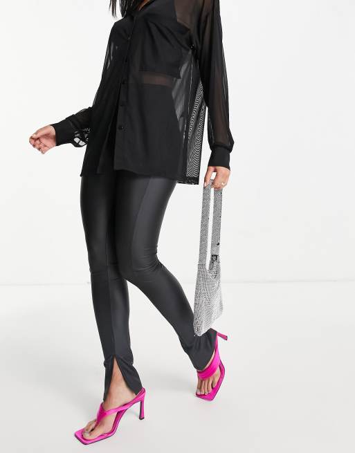 ASOS DESIGN – Svarta leggings med sidoslits i läderimitation