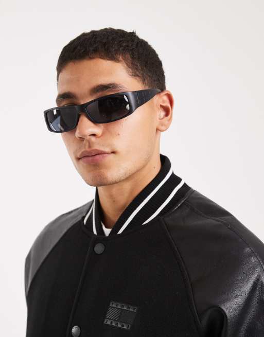 ASOS DESIGN Svarta, matta, rektangulära och smala solglasögon med sotiga glas