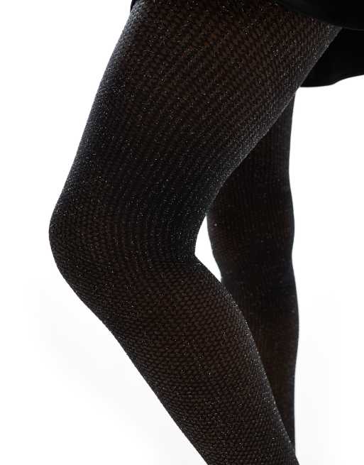 ASOS DESIGN – Svarta, metalliska nätstrumpbyxor
