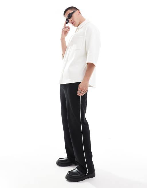 ASOS DESIGN – Svarta mjukisbyxor med vida ben och kontrastfärgade sidoränder